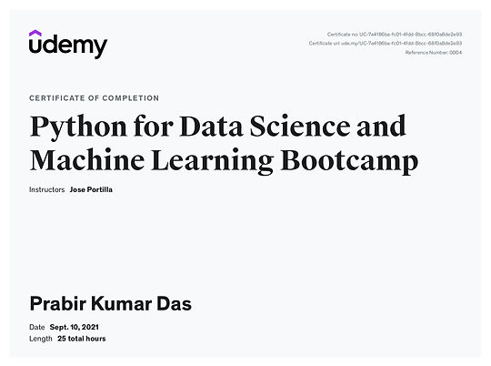 The completion of the Python for DATA Science and Machine Learning Bootcamp course.